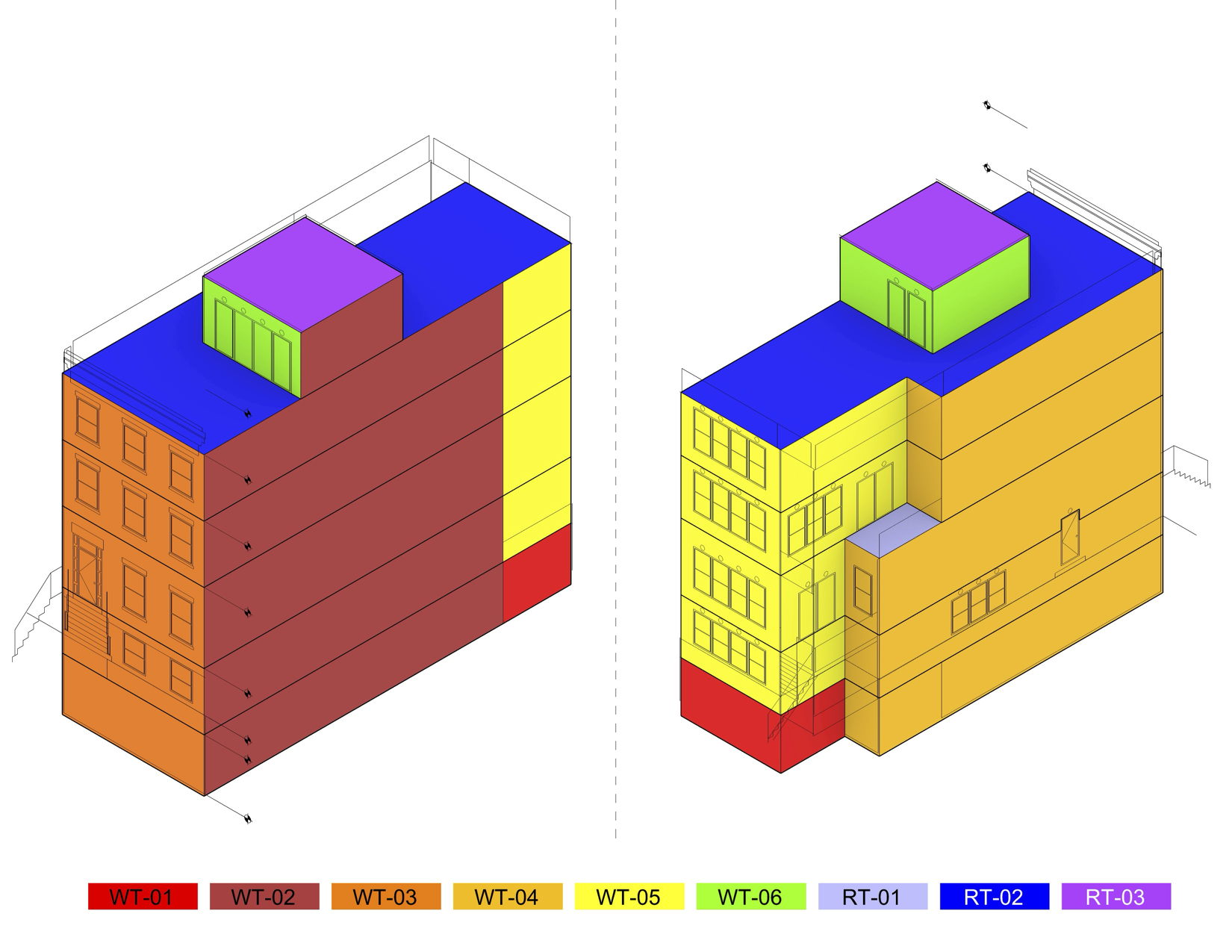 New Rear Walls: Provide vapor-permeable liquid-applied air barrier on the interior face of all existing masonry walls.