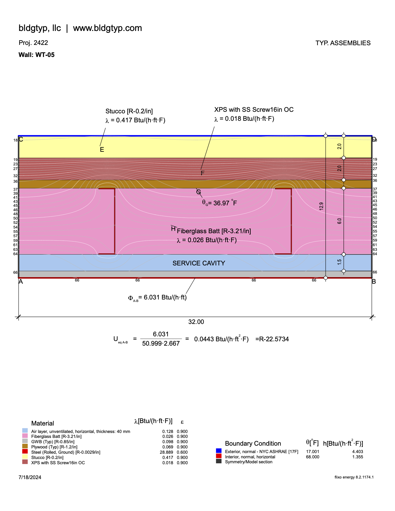 The following assembly U-Values have been assessed using Flixo Energy v8.2. All assemblies are proposed based on the Energy model results shown in previous sections. Note: All 2-dimensional heat flow analysis simulations have been executed following the protocols outlined in ISO 6946 and ISO 10211 where applicable.
