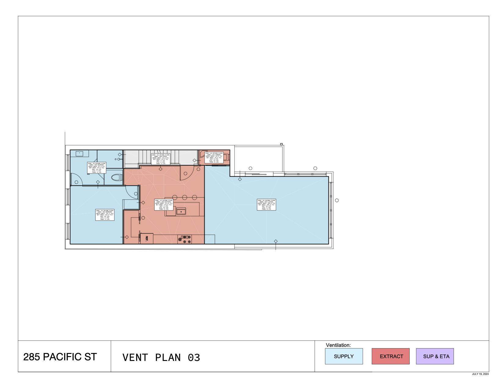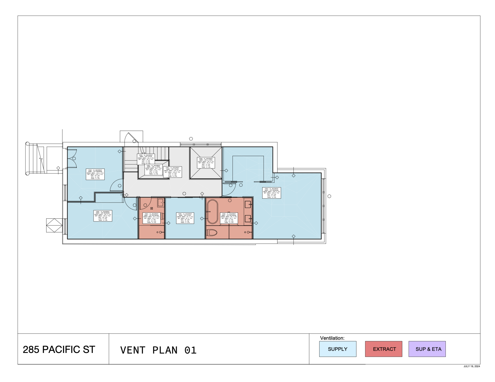 It is important not to over-ventilate a building in winter, otherwise over-dry indoor air and associated health concerns can result. In order to help reduce airflow rates while still maintaining good indoor air-quality, we recommend using a Supply-Transfer-Extract configuration rather than supplying and extracting from each individual room. Supply air should be provided to bedrooms and living spaces, while extract air should be drawn from bathrooms, the kitchen, and any storage spaces. Transfer openings (door undercuts, transfer grills, etc.) should be provided between supply and exhaust spaces.
