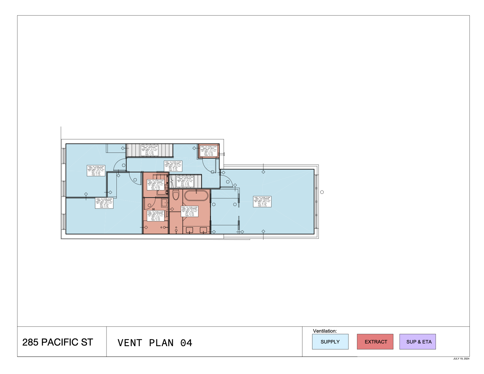 Based on the space usage (Kitchen, Bath, Storage, etc..) establish minimum extract rates. These rates should be as follows: 36 cfm/ kitchen, 26 cfm/full bathroom, 12 cfm/storage or utility room.